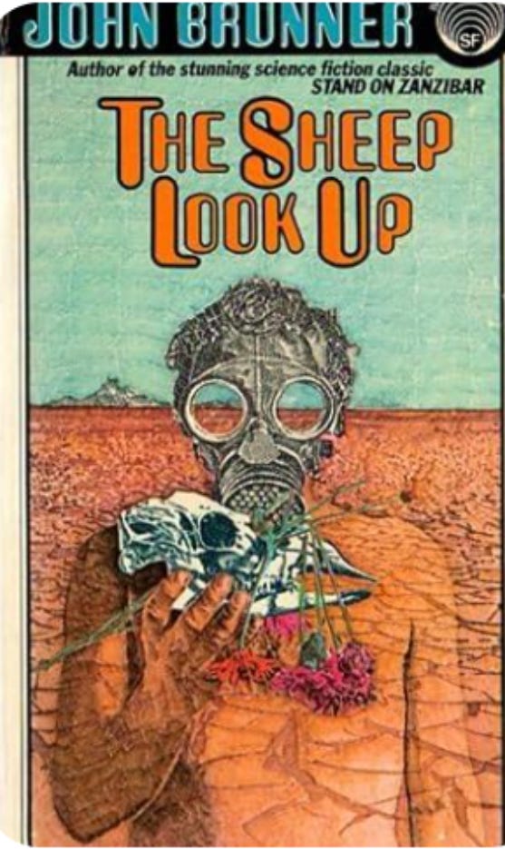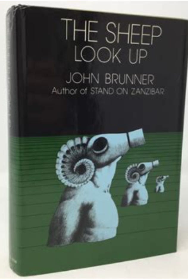 The Sheep Look Up (1972) by John Brunner is a dystopian science fiction novel that paints a grim picture of a near-future world ravaged by environmental collapse, social decay, and corporate greed. The narrative, fragmented and episodic, follows multiple characters in a polluted, overpopulated United States where ecosystems are collapsing, food and water are contaminated, and societal trust is eroding. The title, drawn from Milton’s Lycidas, reflects humanity’s passive acceptance of its self-inflicted doom, like sheep blindly looking up.